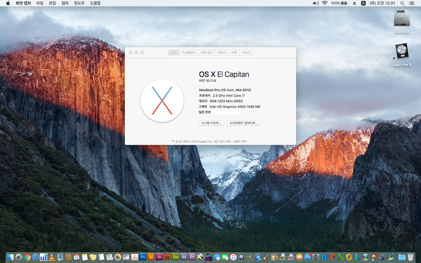 파이널컷 로직프로 깔린 맥북프로 15인치 2012년식