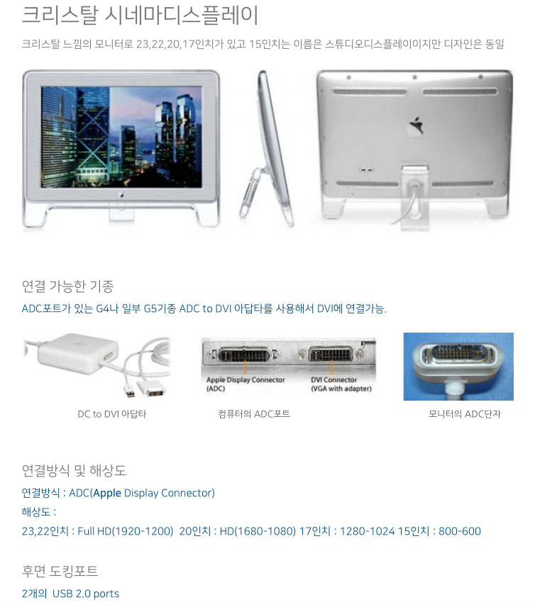 크리스탈시네마HD디스플레이 23인치판매 ADC to DVI 정품포함